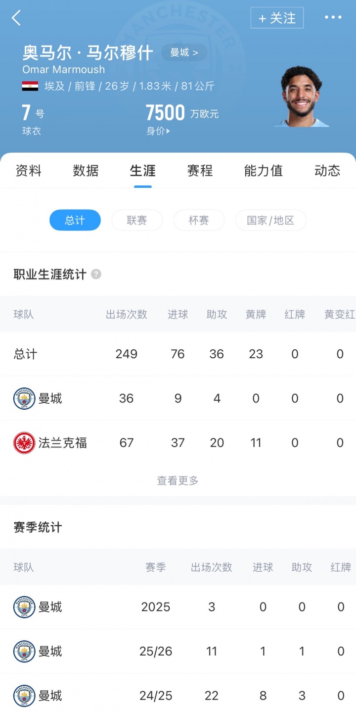 根据Capology数据,马尔穆什在曼城的周薪高达29.5万英镑,排在队内第三位,仅次于哈兰德和B席。26岁的马尔穆什目前转会价格为7500万欧元。
